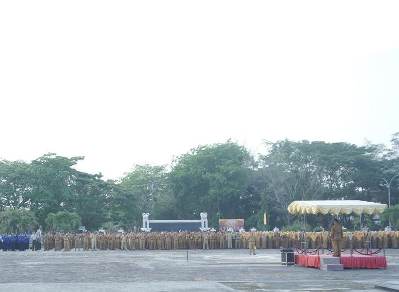 Tembilahan, (30/3/2026) — Bupati Indragiri Hilir, Herman, memimpin apel bersama Aparatur Sipil Negara (ASN) di lingkungan Pemerintah Kabupaten Indragiri Hilir pada Senin 30 Maret 2026. Kegiatan ini dilaksanakan pasca libur nasional dan cuti bersama Hari Raya Idul Fitri 1447 H, bertempat di Lapangan Upacara Kantor Bupati, Jalan Akasia, Tembilahan.