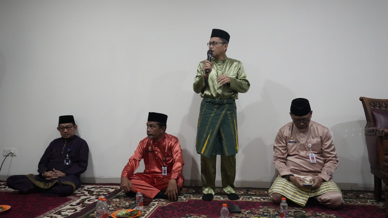 Acara silaturahmi dan perpisahan yang dilaksanakan di Lantai 3 Kantor Bupati Inhil ini, diisi pembacaan yasin dan tausiah Agama oleh Ustadz Ruhiyat.