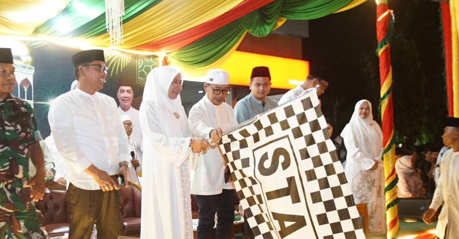 Pelepasan pawai ditandai dengan lantunan takbir diiringi dengan pemukulan beduk oleh Wakil Bupati (Wabup) Kabupaten Indragiri Hilir, Yuliantini.