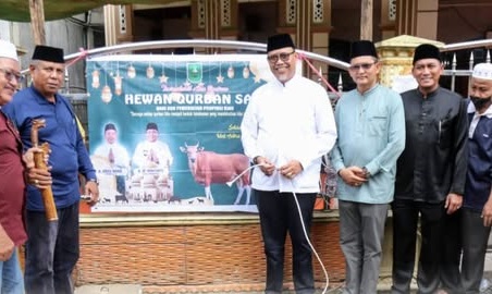 Penyerahan 1 ekor hewan kurban ini di serahkan langsung oleh Bupati melalui Sekda kab Inhil H. Tantawi Jauhari, hewan korban tersebut merupakan bantuan dari Gubernur Riau Abdul Wahid dan ASN Pemrov Riau yang di Terima secara simbolis oleh Camat Keritang M