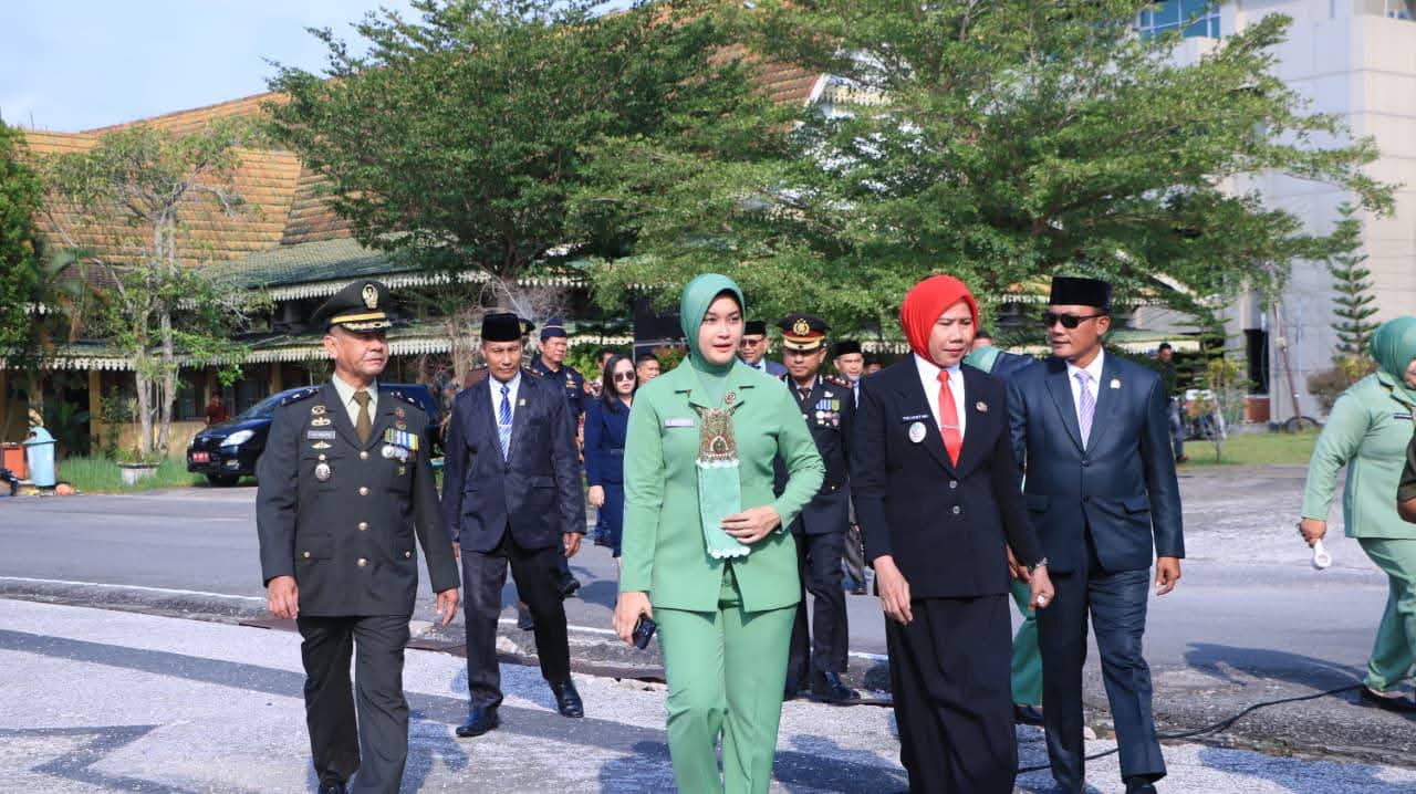 Wakil Bupati Indragiri Hilir (Inhil) Yuliantini menghadiri upacara peringatan Hari Ulang Tahun (HUT) ke-80 Tentara Nasional Indonesia (TNI) tahun 2025 yang digelar oleh Komando Distrik Militer (Kodim) 0314/Inhil di Lapangan Kantor Bupati, Tembilahan, Minggu 5 Oktober 2025 pagi.